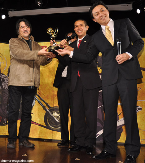 本物のエミー賞を美術監督の池田繁美氏に授賞する偽オバマ&偽鳩山